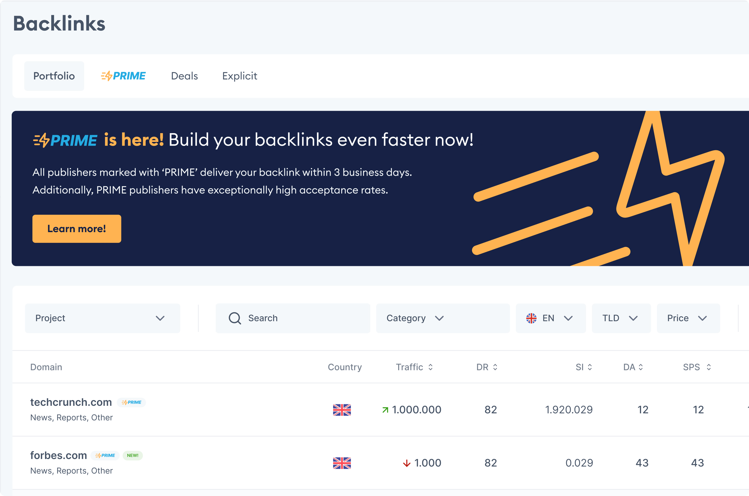 We couldn't make every supplier fast. And we didn't want to remove slow ones – they were real inventory, and sometimes a customer needed a specific niche domain that happened to be slow. But we could carve out a labelled, fast-delivery segment with a clear promise attached. Customers who prioritised speed could filter straight to Prime. Customers who needed something specific could still browse the full catalogue. The two didn't compete – they served different needs.