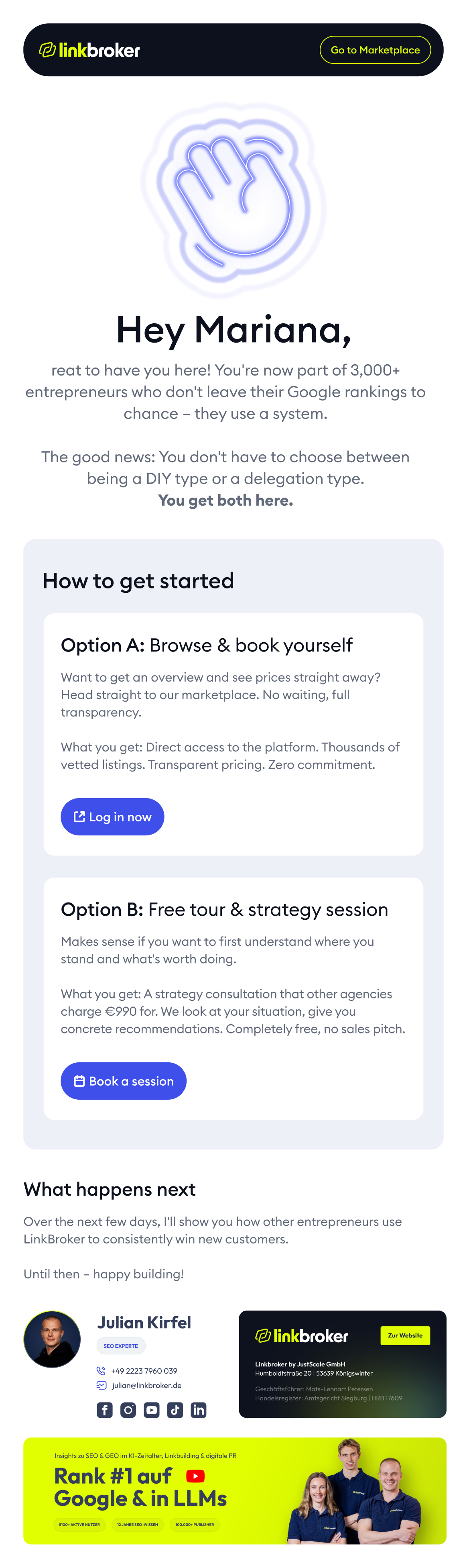 The email redesign wasn't in the original scope. Linkbroker showed me what another designer had produced, I offered to do a version of it, and this is what came out. Same message, different execution.
